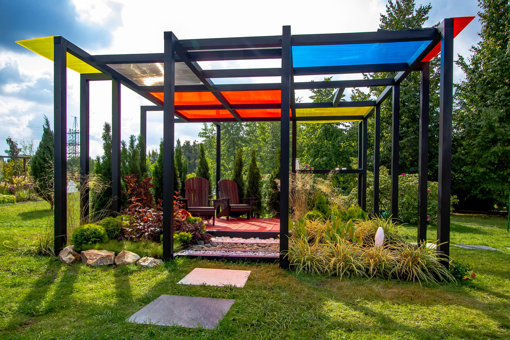 Сад посвящён 100-летию творчества художника Пита Мондриана и создан по мотивам его картины «Красный, жёлтый, синий и чёрный». Мир абстрактных геометрических форм, выражающих особый порядок в мироздании: Четырехугольник, как символ нового человеческого общества, а Квадрат, как крест и сторона куба — одного из идеальных платоновских тел, стали основными принципами «Неопластицизма» — нового стиля в искусстве.